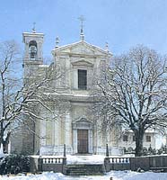 Ricostruita, fra il 1771 e il 1781 su disegno del capomastro Pietrantonio Ceti di Milano, sulle vestigia della chiesa precedente (consacrata nel 1146), dopo una ricostruzione parziale (1747) eseguita dal capomastro Girolamo Cattaneo. L'edificio è di stile tardo barocco e la facciata è adornata con marmi policromi, stucchi (1790) di Martino Pasquelli di Milano e da affreschi.
